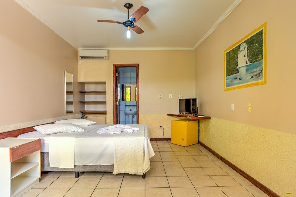 Contamos com acomodações de quartos duplo, triplo e quádruplo, todos são equipados com ar condicionado, ventilador de teto, TV, frigobar, guarda roupa embutido, chuveiro quente e cofre, são 25 aptos com capacidade para grupo e excursão, são todos confortáveis na categoria Standard, limpeza diária, WiFi disponível em toda área da Pousada, piscina, deck coletivo com vista do encontro do Rio de Contas e o Mar, garagem coberta. Recepção atendimento 24 horas.
